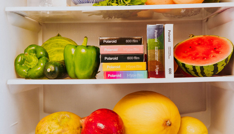Polaroid film is best stored in the fridge to keep the film chemistry stable. When you’re ready to use it, take it out of the fridge and let it sit for an hour or so to adjust to room temperature.